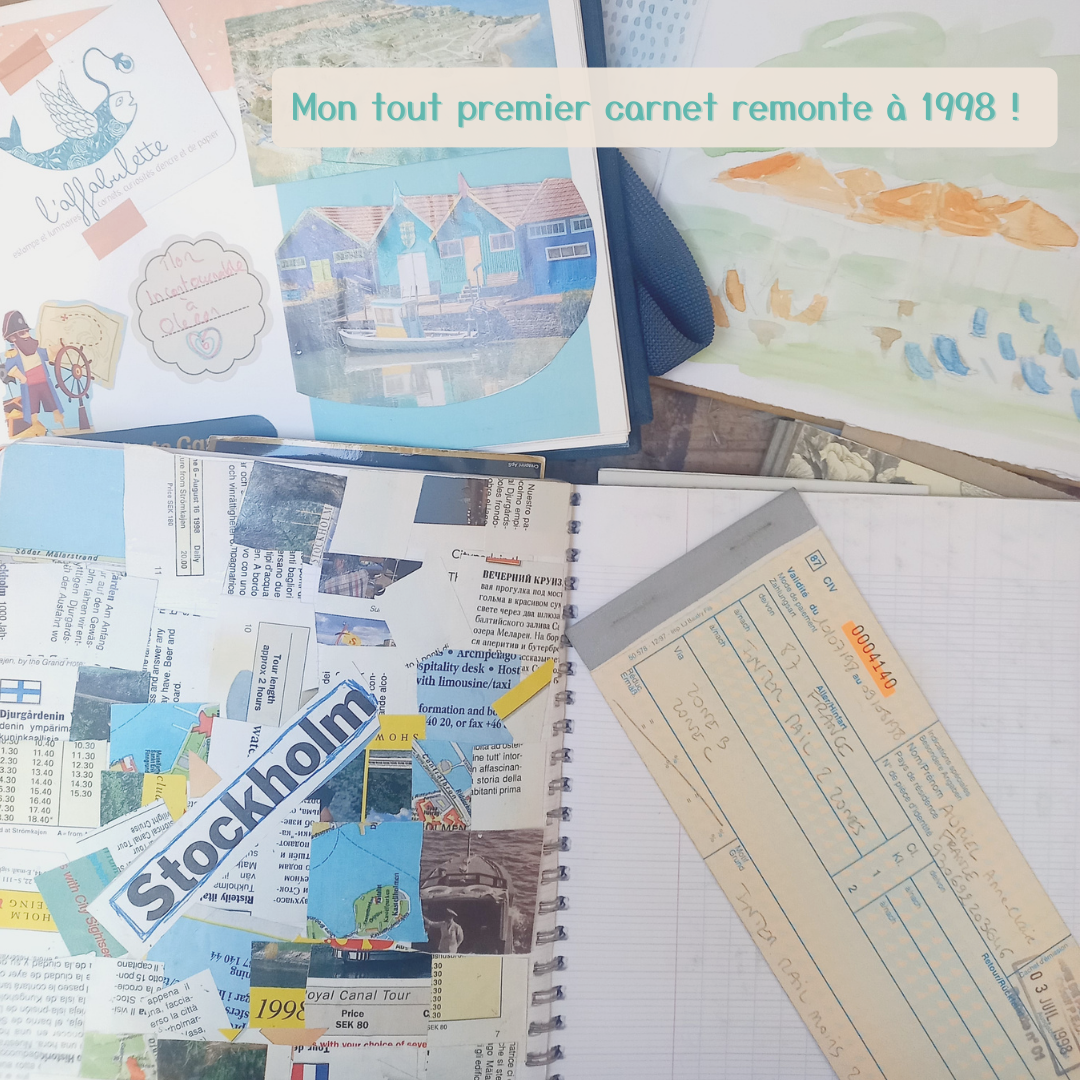 Du tout premier, créé lors d’un camp d’ado itinérant en Scandinavie en 1998, aux carnets plus récents où dessins, aquarelles, collages et écriture se mêlent, chacun raconte une histoire unique.