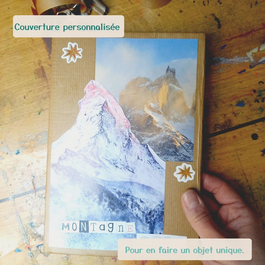Pour ma semaine à la montagne, j’ai finalement opté pour un carnet dédié — un entre-deux entre carnet de voyage et journal créatif. Comme ces vacances sont courtes, plutôt que de prendre un carnet dont je n’utiliserais pas toutes les pages, j’ai décidé de le fabriquer moi-même.